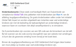 Daarom hebben we in 2024 en 2025 350 boekenboxen uitgedeeld aan instanties waar veel anderstalige kinderen komen of verblijven. In deze boxen zitten acht prentenboeken. Wij hebben ervoor gezorgd dat ieder kind ze kan begrijpen in de eigen taal. De boekjes zijn voorzien van een speciale QR-code. Bij het scannen van deze code wordt naar de vertaling gelinkt en wordt het boek in de eigen taal voorgelezen. Met dit project streven we ernaar duizenden kinderen aan het lezen te krijgen.